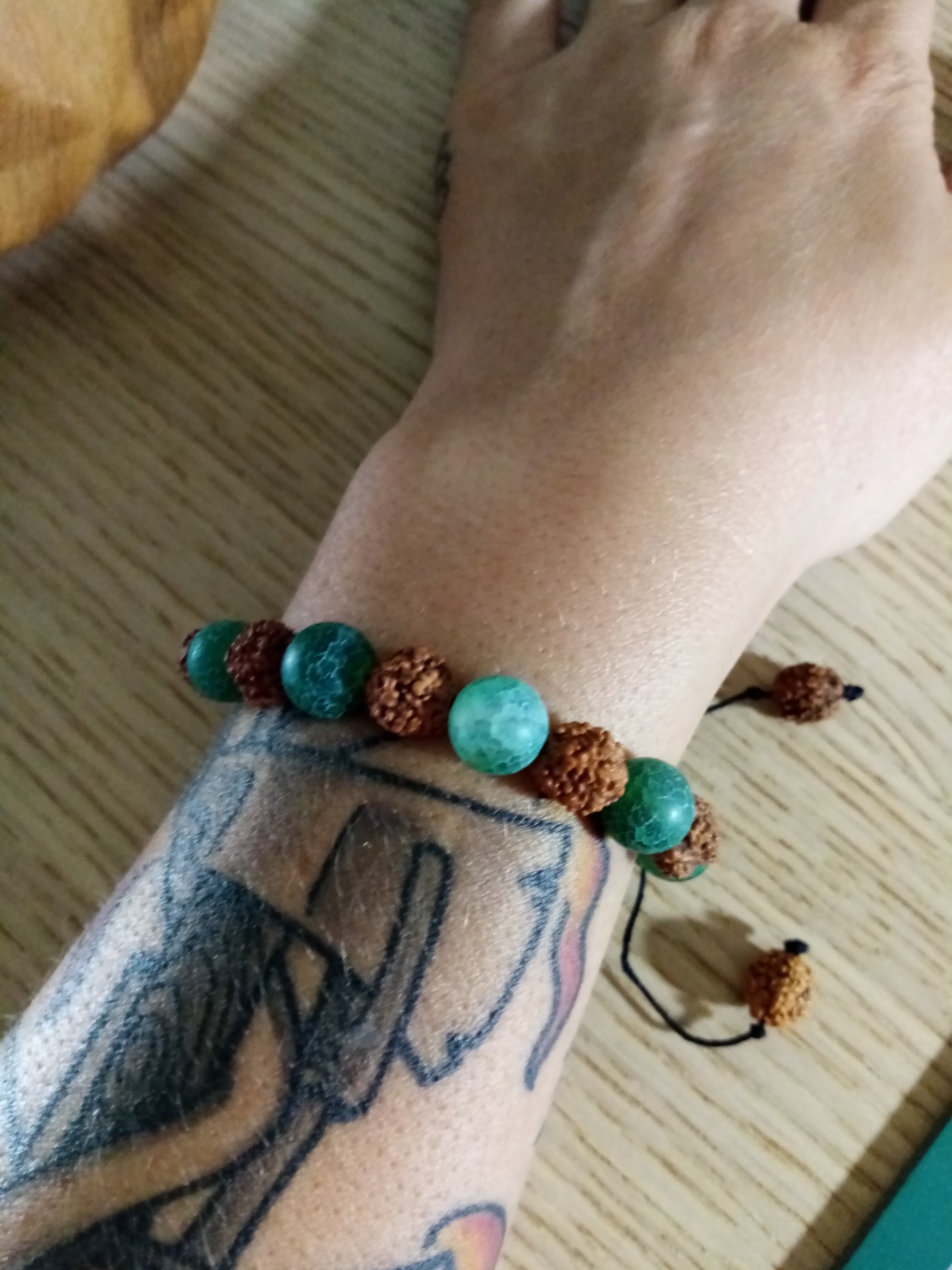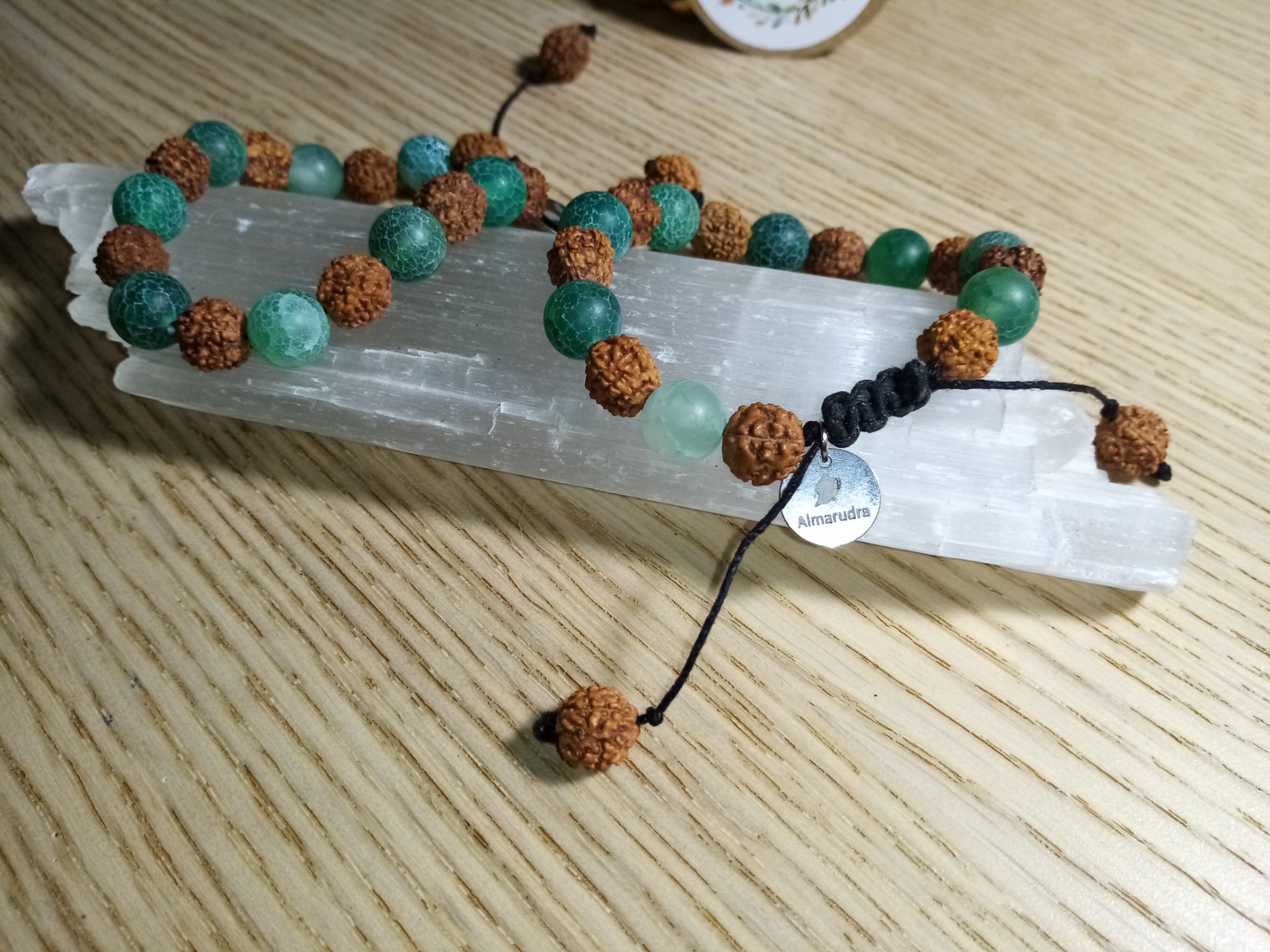 combinação entre a divina Rudraksha e a pedra semipreciosa Ágata Crackle Verde é