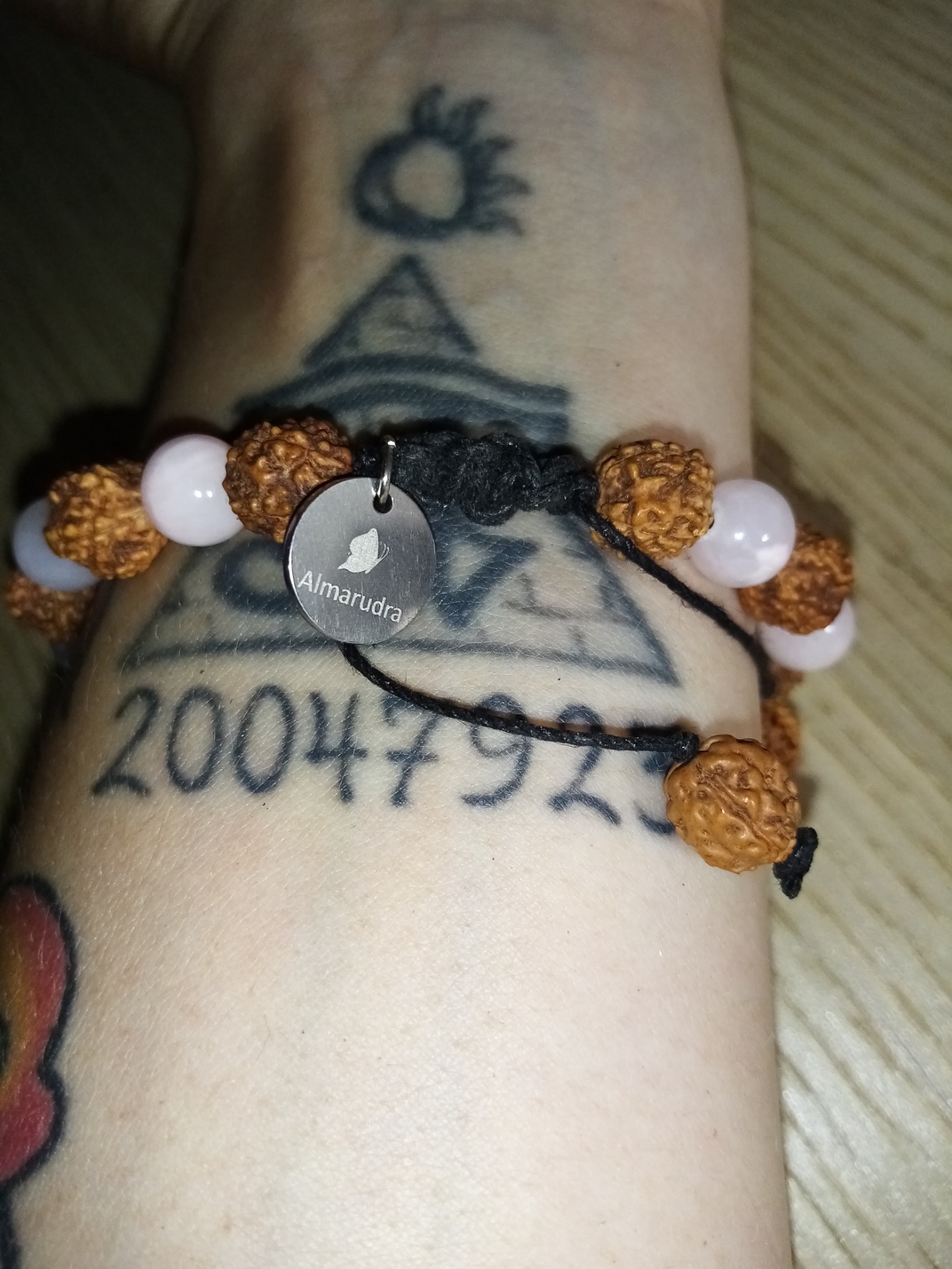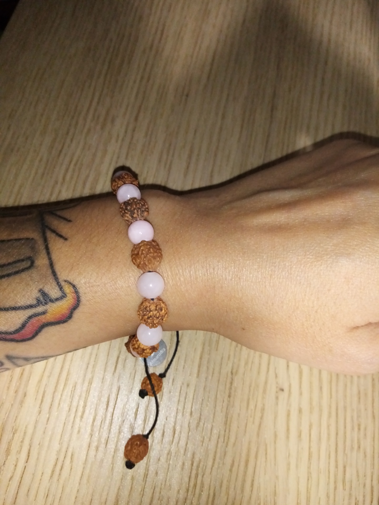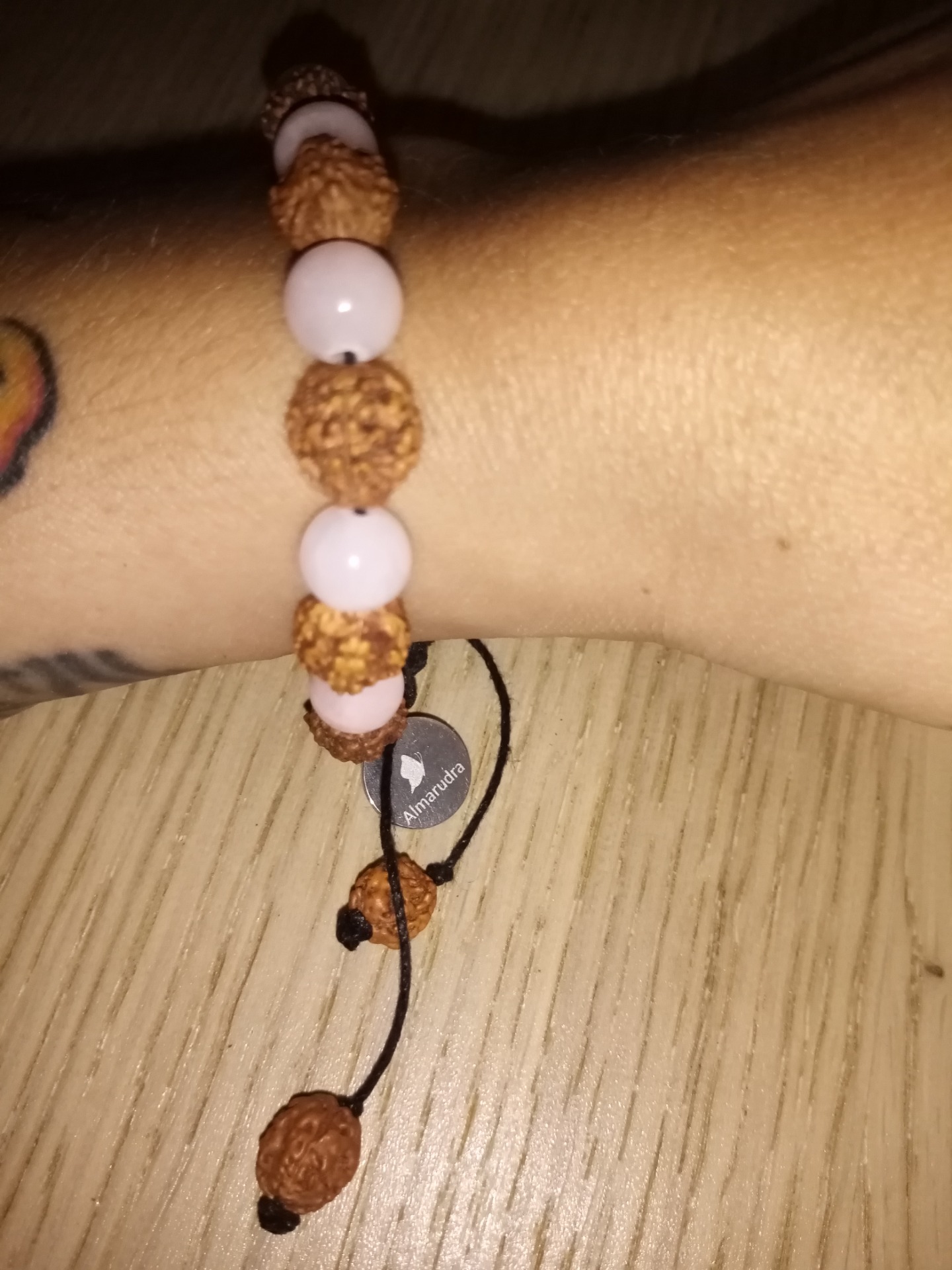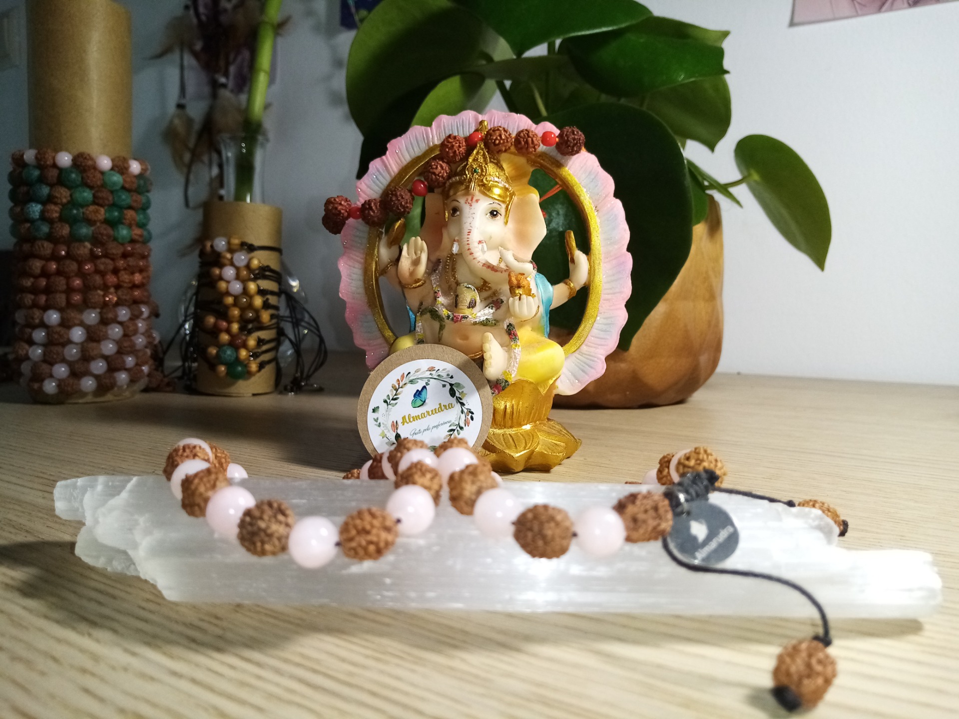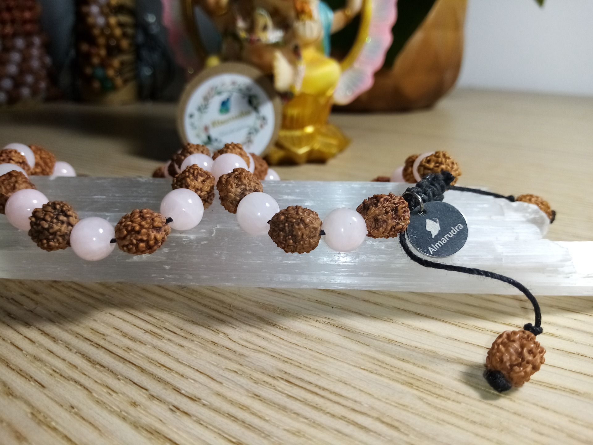 divina Rudraksha com a pedra semipreciosa Jade Rosa esta junção de cura e amor para