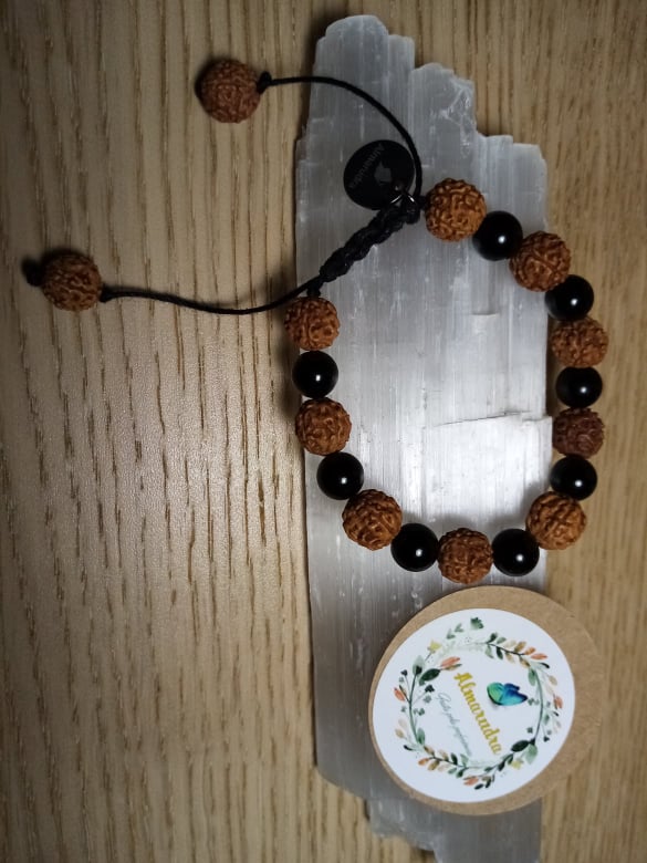 talismã poderoso combina a divina Rudraksha com a pedra semipreciosa Turmalina
